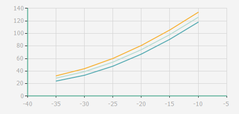 | 蒸發(fā)溫度 | 制冷量+/-5% | 能耗+/-5% | 現(xiàn)在能效+/-5% | 氣體流速+/-5% | 能效+/-7% | ||||
